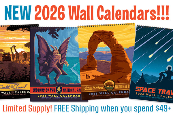 Since 1993, our family owned business has been producing high-quality illustrated prints, books, and wall decor. Our original travel art is not only affordable but accessible to everyone. We love what we do as visual communicators—and it shows when we illustrate, hand-letter, or design in our favorite 20th-Century travel poster styles. We custom-print each of our posters in-house using the highest-quality inks and papers. Our most popular collection of designs is our National Parks poster collection, the perfect choice for any American adventure.