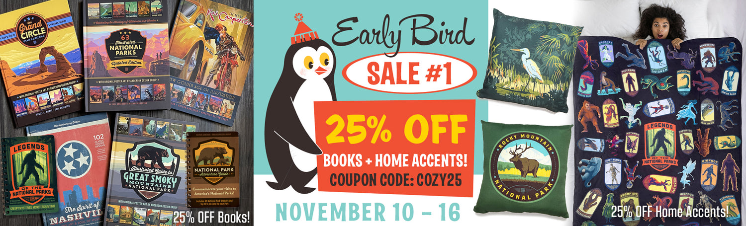 ADG founder Joel Anderson has collaborated with artist and explorer Kenneth Crane and researcher Ren Brabenec to produce a stunning new illustrated National Parks book. This gorgeous 192-page book features over 560 spot illustrations drawn from Ken's on-site park adventures.