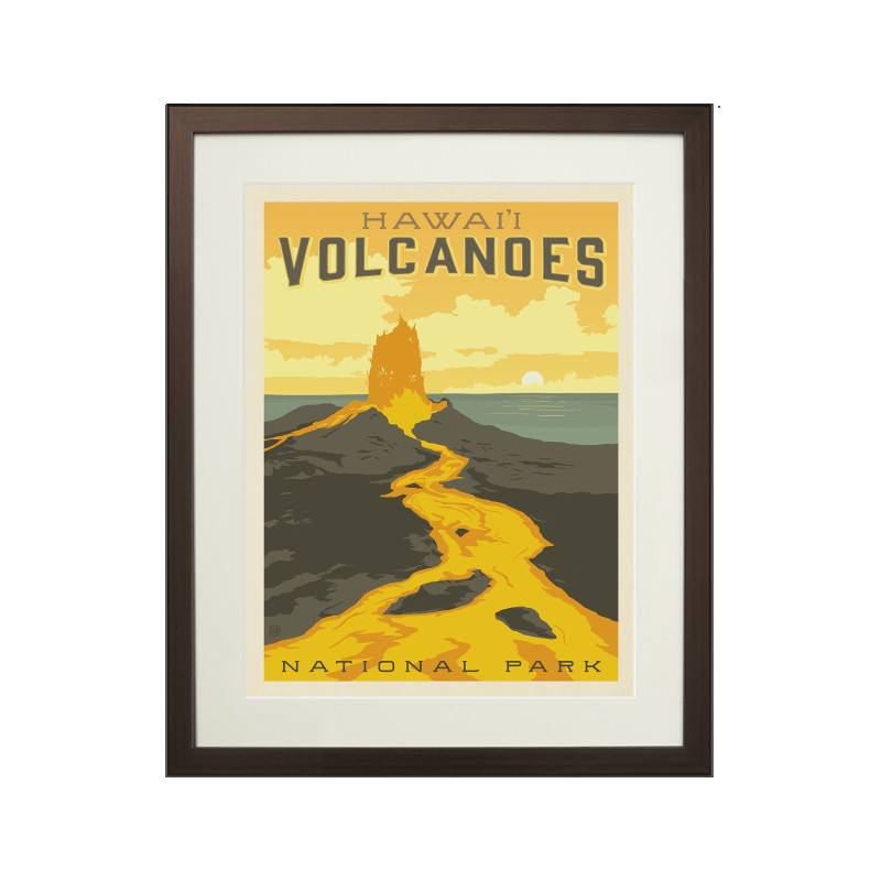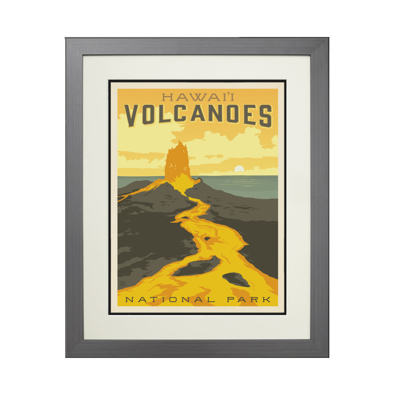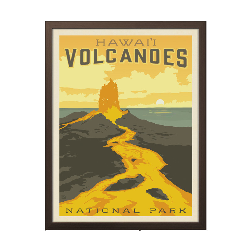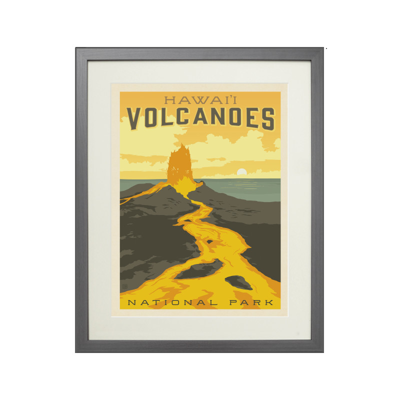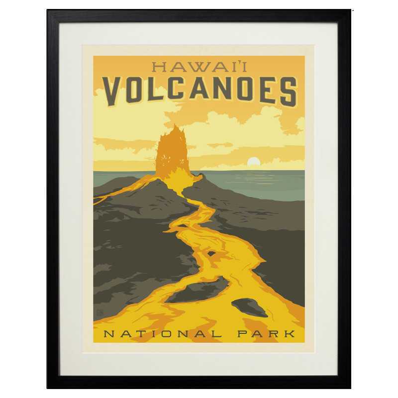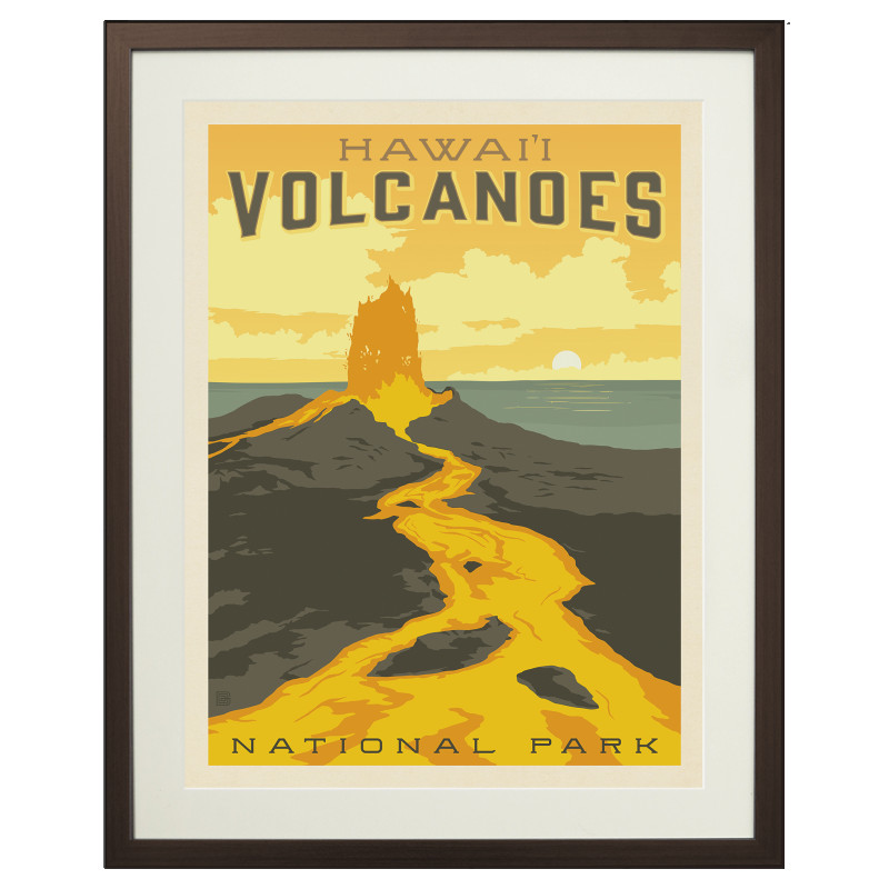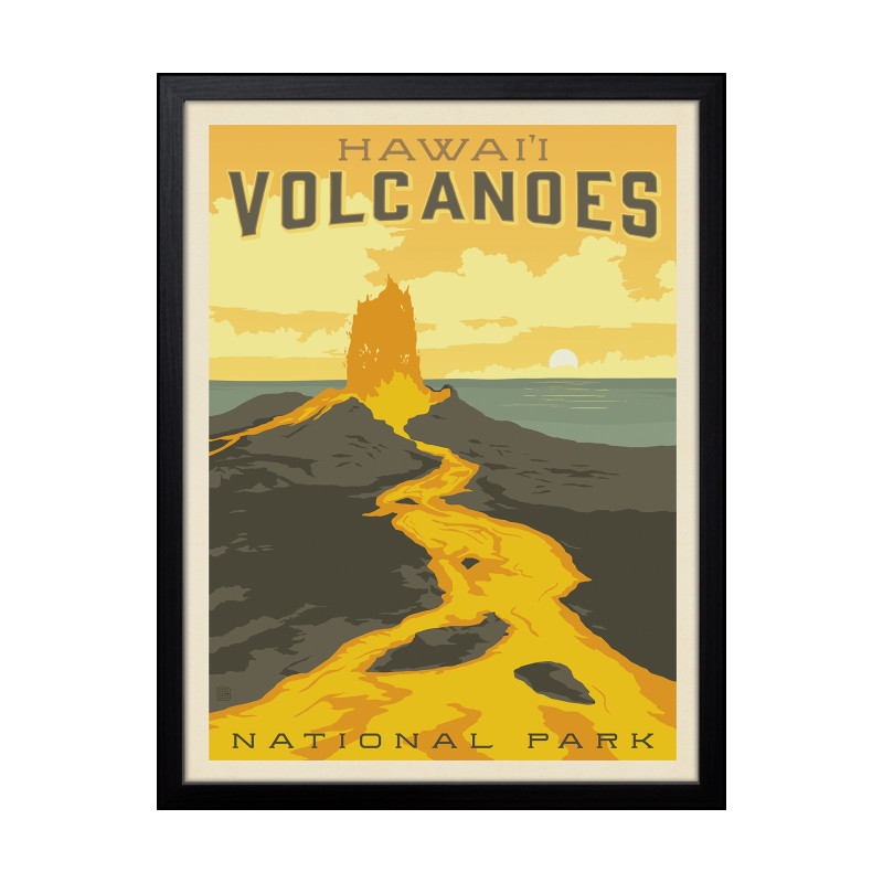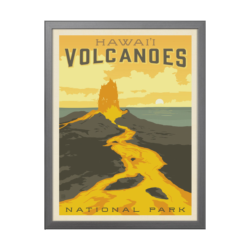 Hawai'i Volcanoes National Park offers two active volcanoes, Kīlauea and Mauna Loa. The park is found on the island of Hawai'i, the largest of the Hawaiian Islands. Visitors are able to get close to active lava flow (but not too close of course). What makes this park fascinating is that, because of the volcanoes' subdued yet constant activity of emitting lava, the island itself is actually growing. Visitors to the island can watch slow rivers of lava as they flow from the volcano all the way down to the ocean. When the lava hits the water and eventually cools and hardens, the island gets a little bigger. ADG eternalized a volcanic surge from “Puʻu ʻŌʻō,” one of the active vents on the Kīlauea volcano. To learn more about the volcanoes, visit the Friends of Hawai’i Volcanoes National Park.