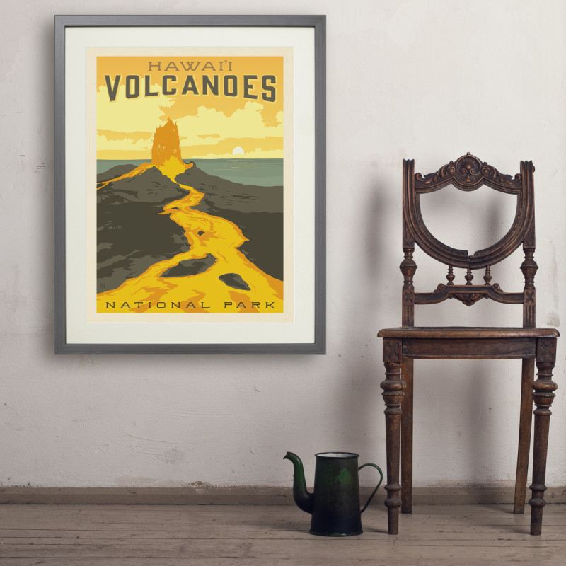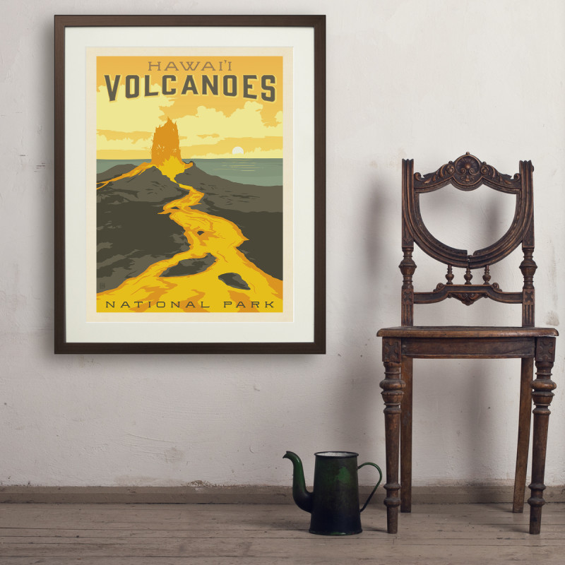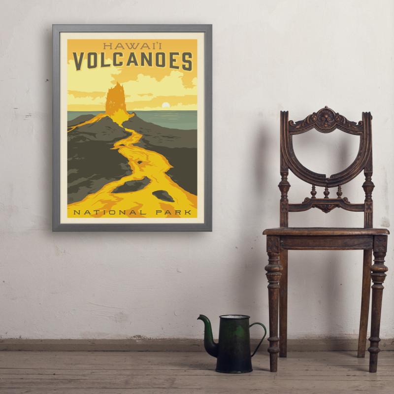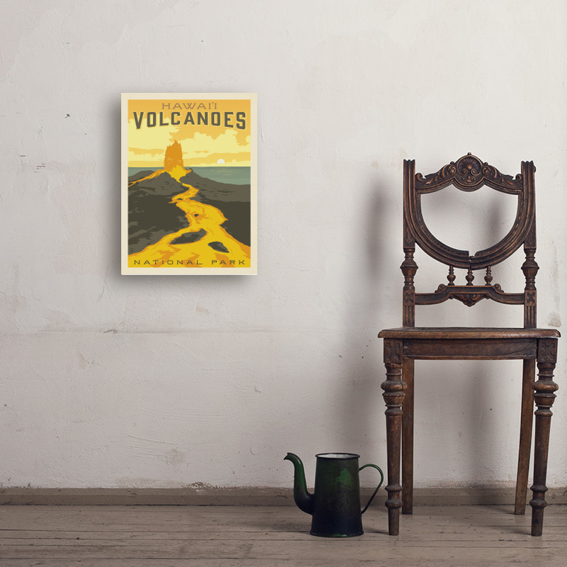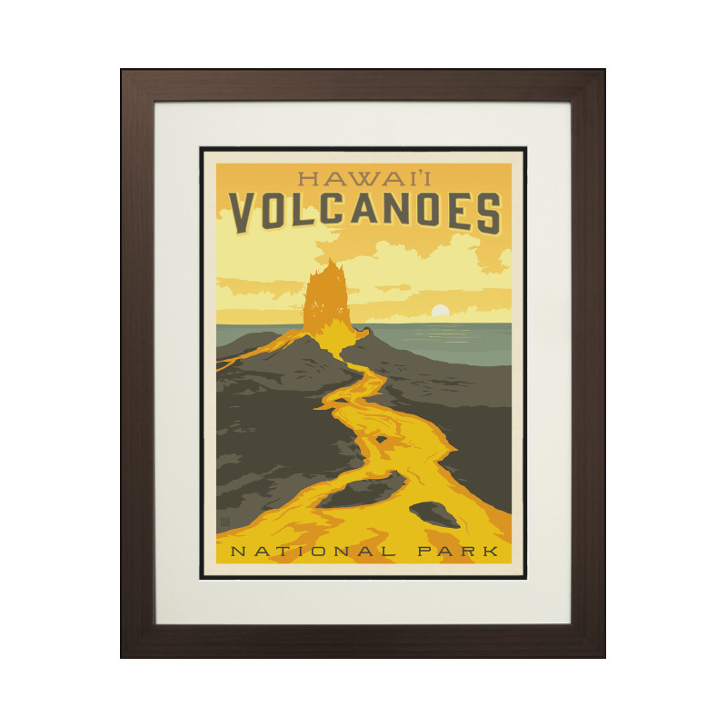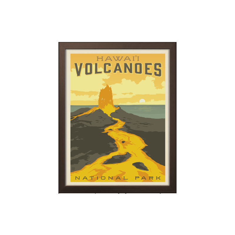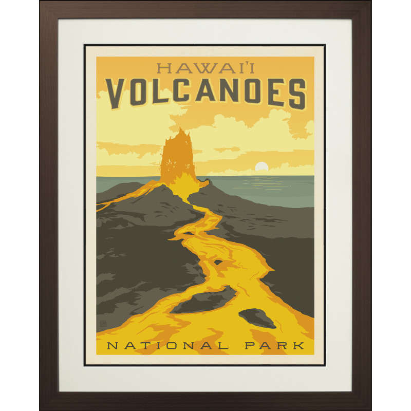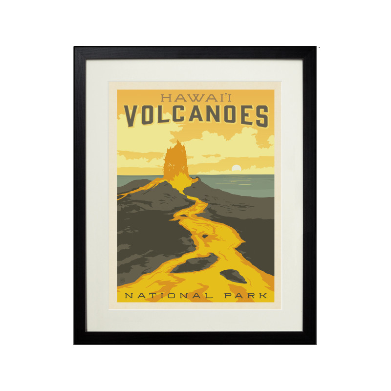 Hawai'i Volcanoes National Park offers two active volcanoes, Kīlauea and Mauna Loa. The park is found on the island of Hawai'i, the largest of the Hawaiian Islands. Visitors are able to get close to active lava flow (but not too close of course). What makes this park fascinating is that, because of the volcanoes' subdued yet constant activity of emitting lava, the island itself is actually growing. Visitors to the island can watch slow rivers of lava as they flow from the volcano all the way down to the ocean. When the lava hits the water and eventually cools and hardens, the island gets a little bigger. ADG eternalized a volcanic surge from “Puʻu ʻŌʻō,” one of the active vents on the Kīlauea volcano. To learn more about the volcanoes, visit the Friends of Hawai’i Volcanoes National Park.