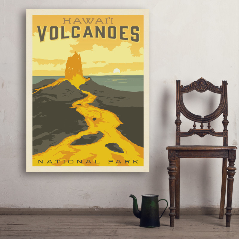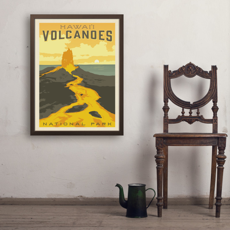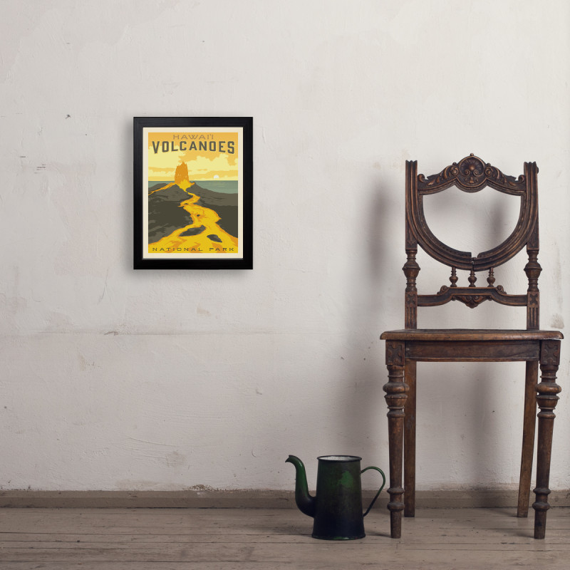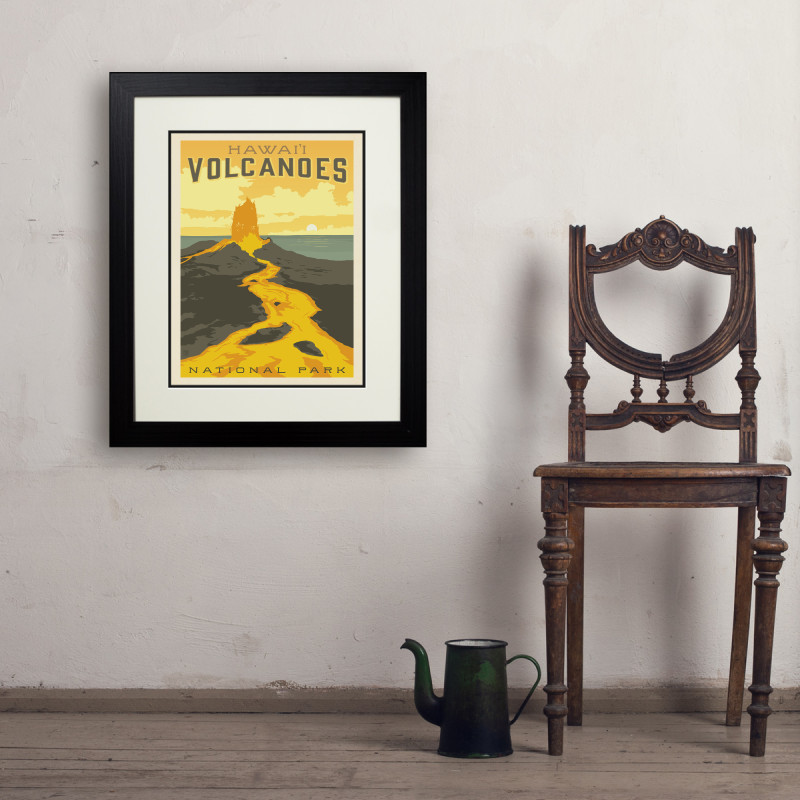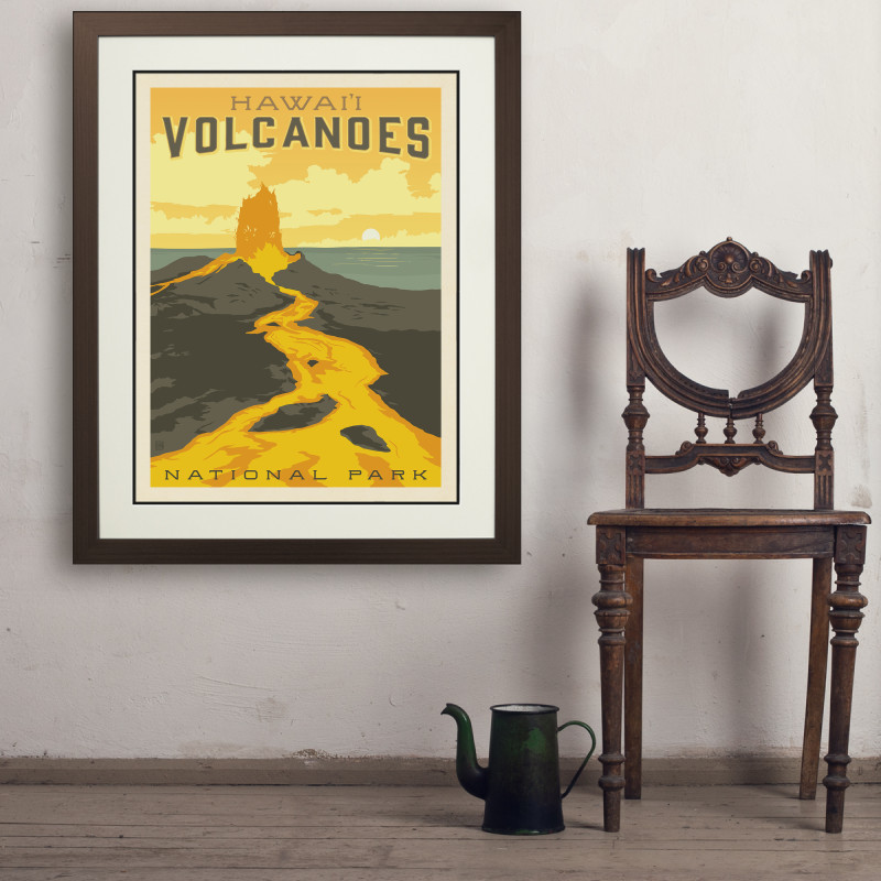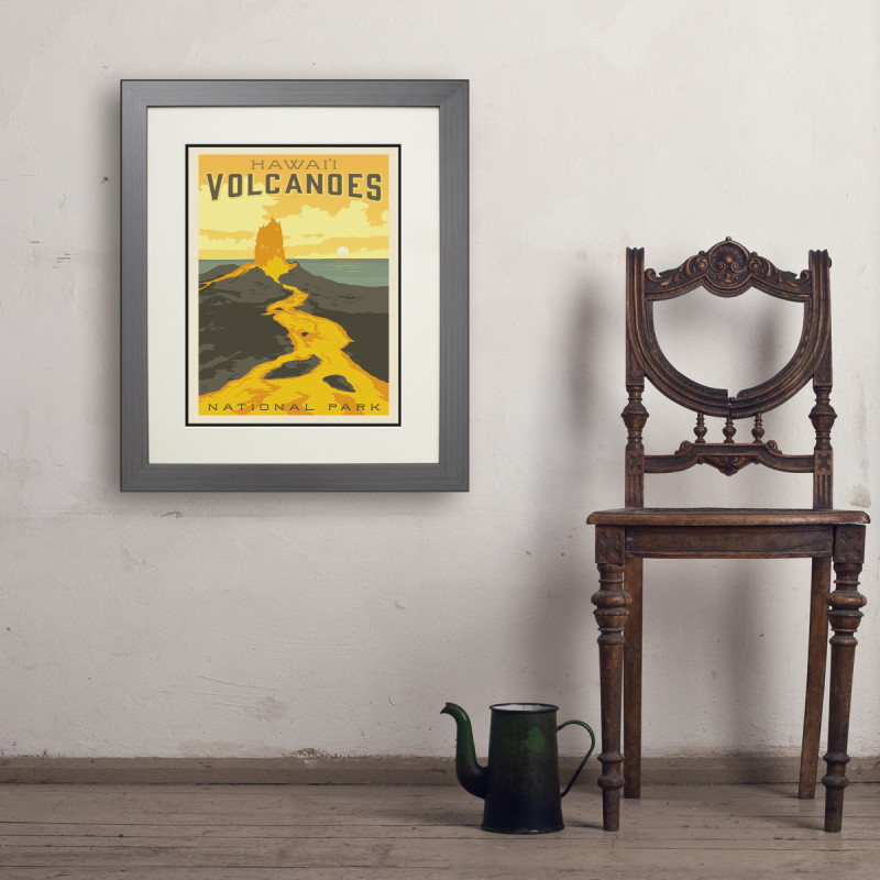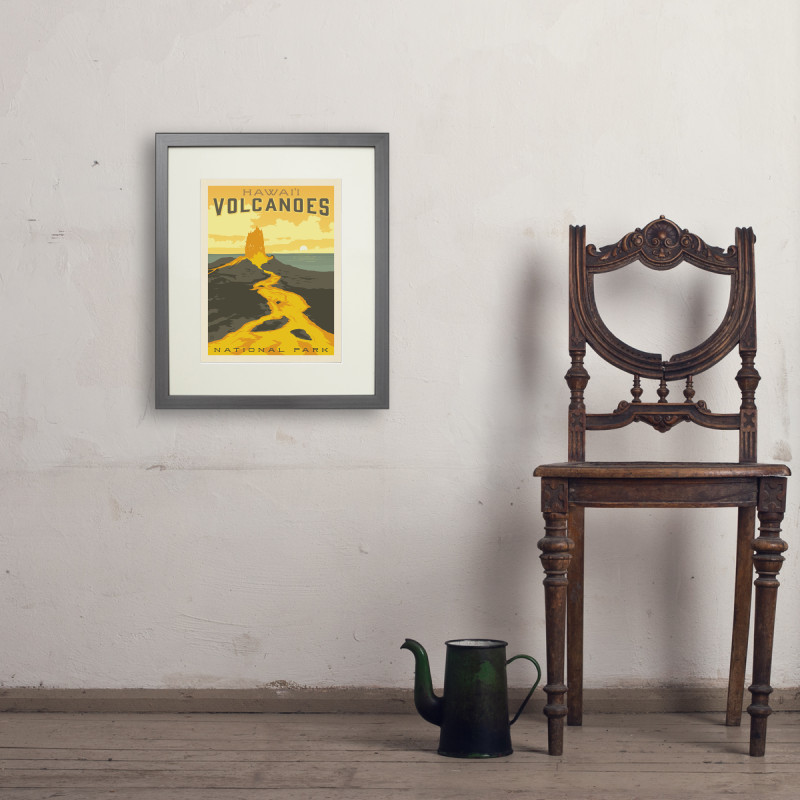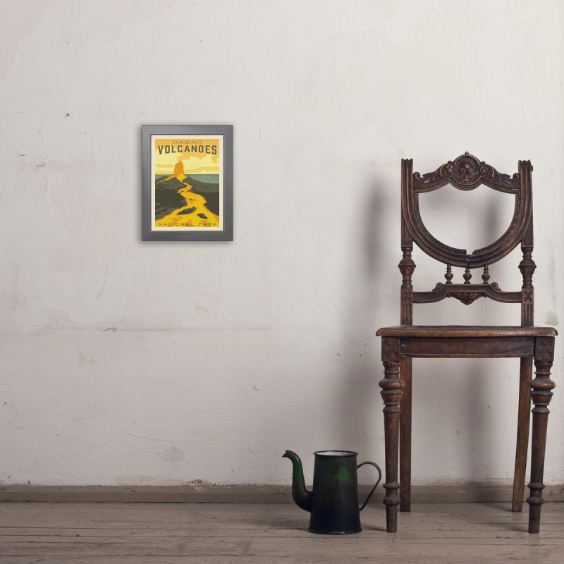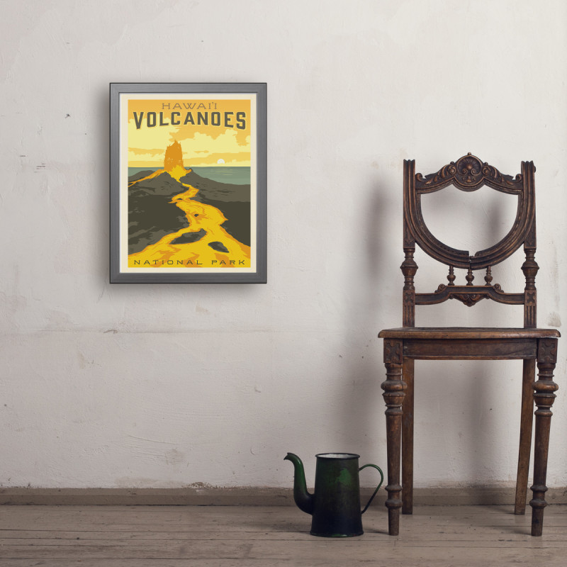 Hawai'i Volcanoes National Park offers two active volcanoes, Kīlauea and Mauna Loa. The park is found on the island of Hawai'i, the largest of the Hawaiian Islands. Visitors are able to get close to active lava flow (but not too close of course). What makes this park fascinating is that, because of the volcanoes' subdued yet constant activity of emitting lava, the island itself is actually growing. Visitors to the island can watch slow rivers of lava as they flow from the volcano all the way down to the ocean. When the lava hits the water and eventually cools and hardens, the island gets a little bigger. ADG eternalized a volcanic surge from “Puʻu ʻŌʻō,” one of the active vents on the Kīlauea volcano. To learn more about the volcanoes, visit the Friends of Hawai’i Volcanoes National Park.