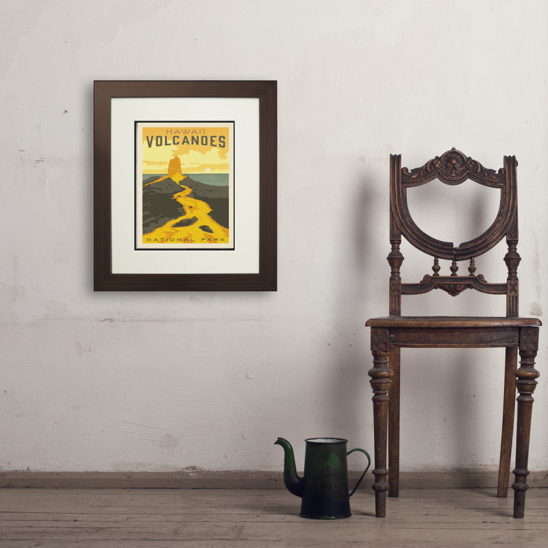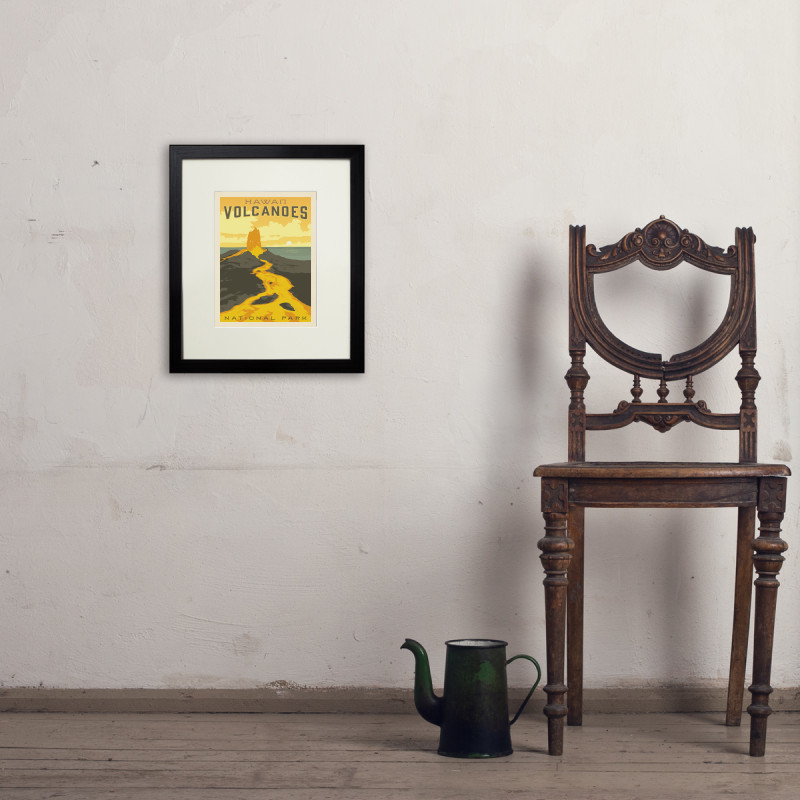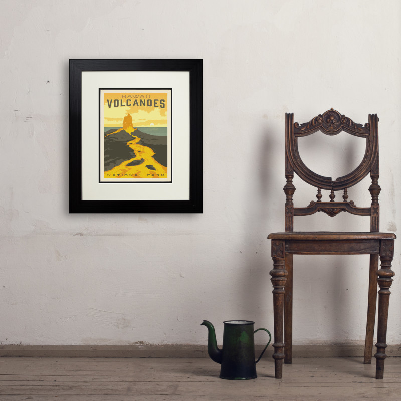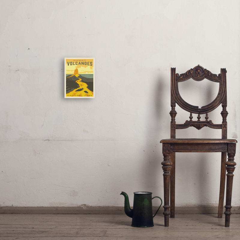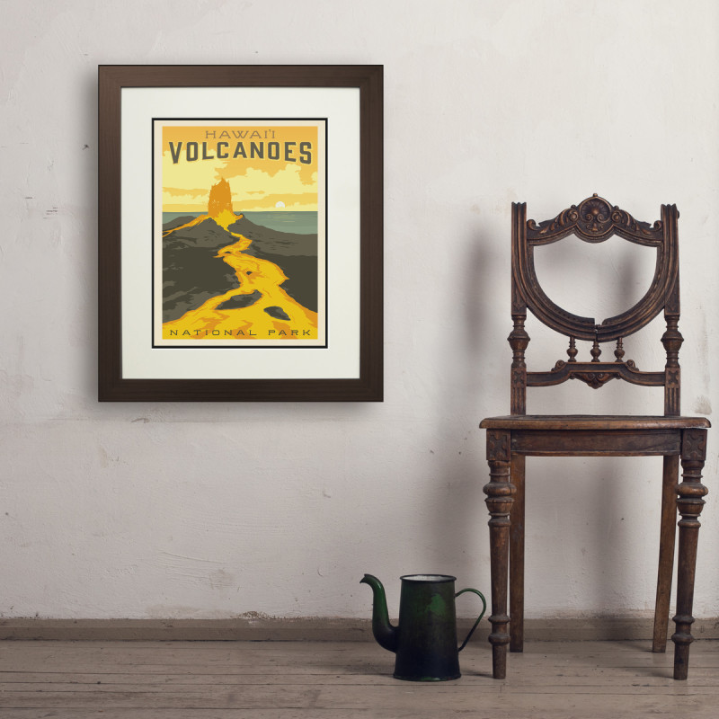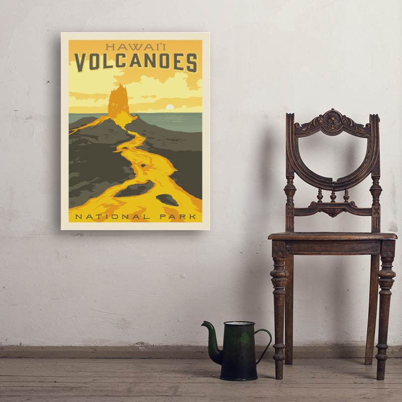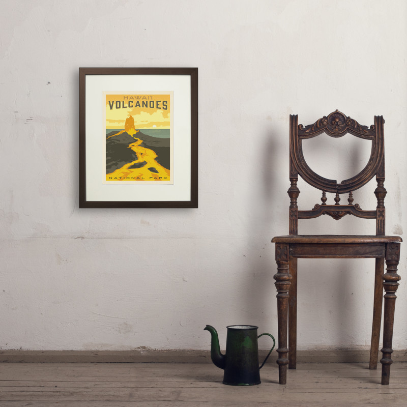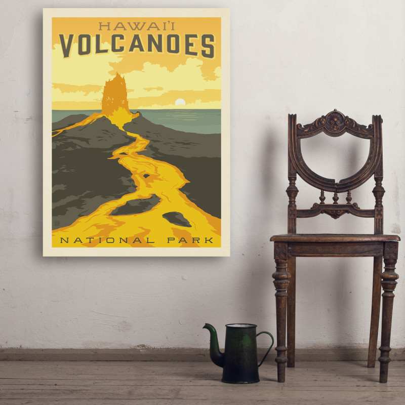 Hawai'i Volcanoes National Park offers two active volcanoes, Kīlauea and Mauna Loa. The park is found on the island of Hawai'i, the largest of the Hawaiian Islands. Visitors are able to get close to active lava flow (but not too close of course). What makes this park fascinating is that, because of the volcanoes' subdued yet constant activity of emitting lava, the island itself is actually growing. Visitors to the island can watch slow rivers of lava as they flow from the volcano all the way down to the ocean. When the lava hits the water and eventually cools and hardens, the island gets a little bigger. ADG eternalized a volcanic surge from “Puʻu ʻŌʻō,” one of the active vents on the Kīlauea volcano. To learn more about the volcanoes, visit the Friends of Hawai’i Volcanoes National Park.