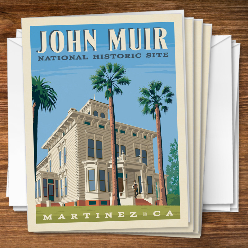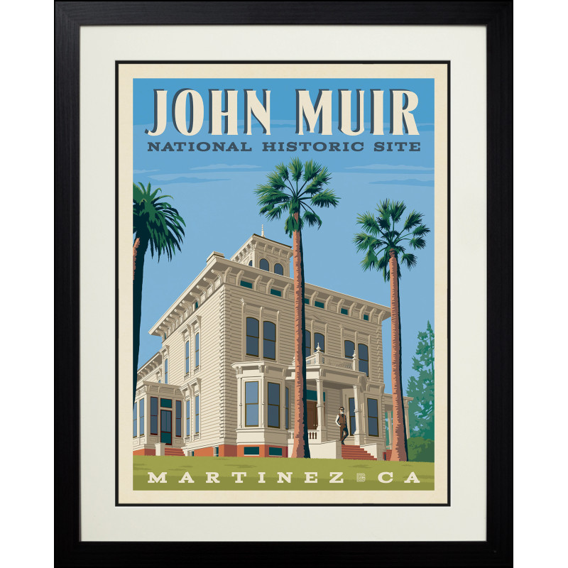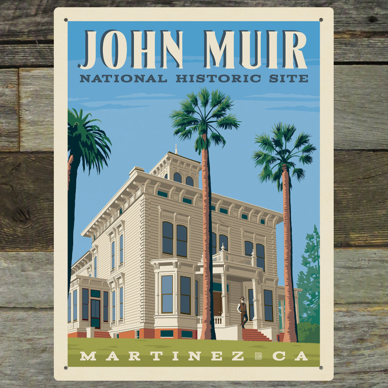 Just as it is important to preserve America’s wilderness areas, it is also important to celebrate the individuals who pioneered such conservation. As America’s most famous naturalist and conservationist, John Muir fought to protect the wild places he loved, places we can still visit today. Muir’s writings convinced the U.S. government to protect Yosemite, Sequoia, Grand Canyon, and Mt. Rainier as national parks. The John Muir National Historic Site is located in the San Francisco Bay Area, in Martinez, California. It preserves the 14-room Italianate Victorian mansion where the naturalist and writer John Muir lived, as well as a nearby 325-acre tract of native oak woodlands and grasslands historically owned by the Muir family. Celebrating this National Park Service site, this national historic site design and vintage poster art would be perfect for home or office decor. The art also serves as an excellent national park gift for the travel enthusiast in your life. As an original illustration, the design will look great as an unframed print, framed poster, notecard, postcard, metal sign, canvas, or mini canvas. Available in multiple size options, this hand-rendered nature illustration is fashioned in the style of 20th-century vintage art and the iconic travel art that first promoted the national parks and national monuments. For trip-planning, fun facts, helpful resources, and important conservation information for this park and so many other beautiful national parks, monuments, and wilderness areas across the U.S., check out the website for the National Park Foundation.