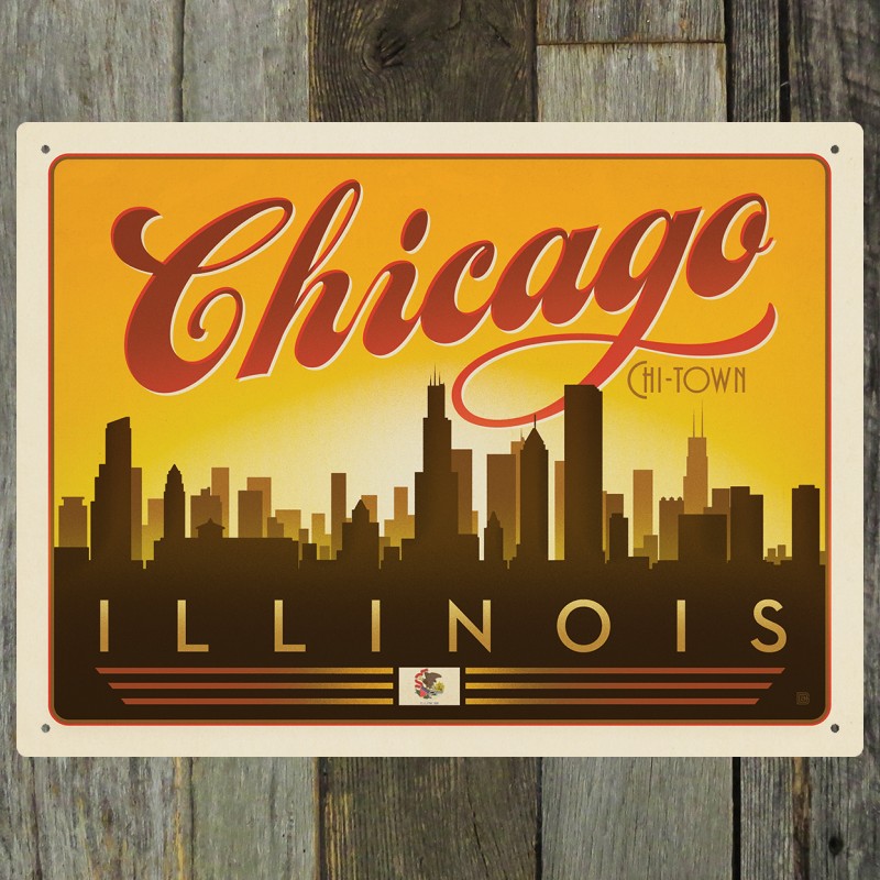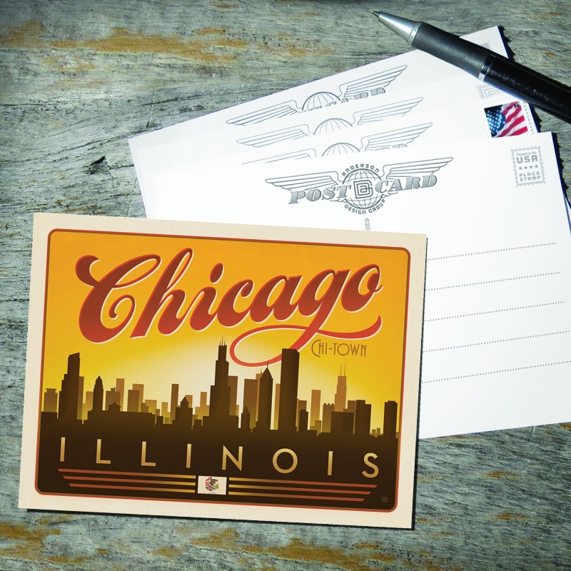 Who could forget the skyline, one of the most impressive features of Chicago? Second only to New York City for total number of skyscrapers in the U.S., the skyline of the Windy City is truly magnificent. In fact, the Chicago skyline is seventh in the world for total number of skyscrapers. Inspired by those towering wonders of human ingenuity and design, Anderson Design Group handcrafted a panoramic illustration of the skyline at sunset, depicting the beauty of these monoliths silhouetted against the last rays of daylight. Show off your love for Chi-Town with a sweeping canvas banner of this mid-1900s vintage illustration, or conserve wall space with a framed postcard or set of notecards. To learn more about the city’s many skyscrapers, click on over to the Chicago Visitor Center.