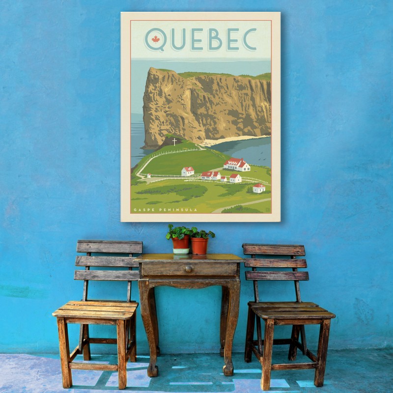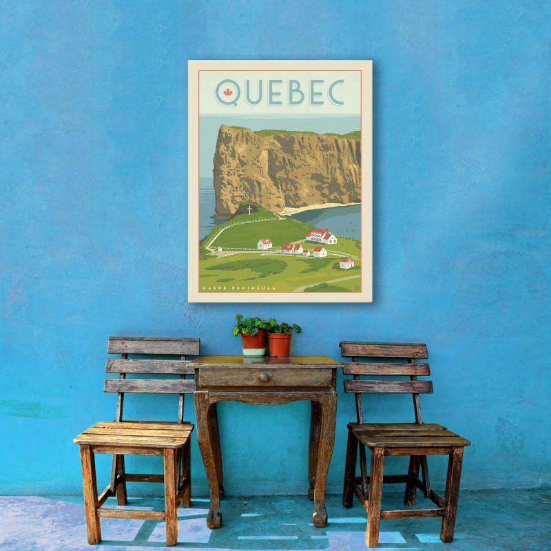 The wild north, the second largest country in the world, and a nation with more freshwater lakes than any country in the world, Canada offers much to prospective visitors. One such attraction is Quebec’s Perce Gaspe Peninsula. This peninsula is the home of a small village and the Perce Rock, a huge, arched rock formation that rises out of the sea not far off the coast. Visitors from near and far come to this region of Quebec to enjoy the quaint town, the famous rock, and other, local attractions. The region has become a historically rich, natural icon of Quebec. There is even 1600s-era artwork of the rock preserved in nearby museums. Now you can own artistic renditions of the rock too, via a unique, hand- drawn vintage illustration by Anderson Design Group. To learn more about the rock and other attractions, check out the Canada Guide.