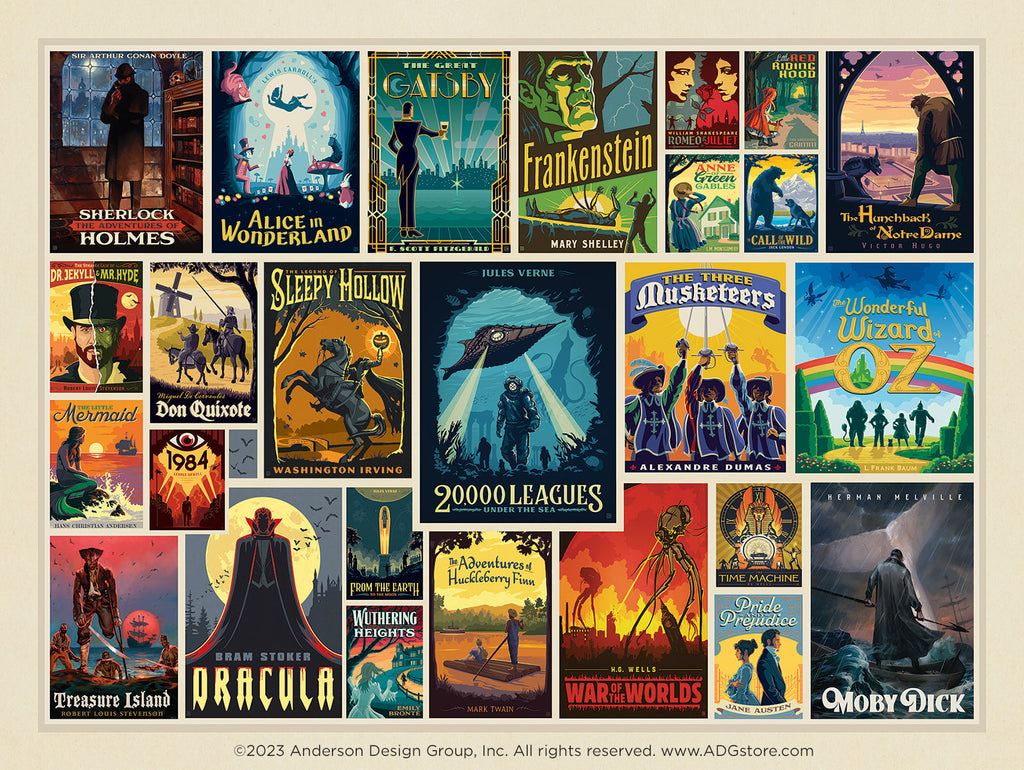 Hundreds of Anderson Design Group’s original poster designs and travel illustrations showcase beautiful places across America and the world, travel art rendered in a style that celebrates the vintage poster art of the 1900s. But today, we’re celebrating two art collections that acknowledge the places our minds go when we daydream or read, places we can't visit in-person. Say hello to Fantasy Travel and Literary Classics!
