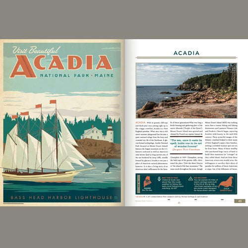 Our original award-winning 160-page coffee table book was created to commemorate the 100th Anniversary of the National Park Service. This beauty is perfect for any outdoor lover, poster art fan, or American history buff. It is the book that launched our National Parks series, and it is now a collector's favorite! This 9” x 12” full-color hardcover coffee table book includes 59 of our National Park posters, plus 12 oil paintings, historic photos, a map of the USA, facts, travel tips, and the 100-year history of the National Park Service. Back in 2011, Joel Anderson and his team of award-winning artists set out to create a poster for each of the National Parks. Along the way, Joel and his son Nathan traveled to several parks gathering reference, photos, and inspiration for a book that would eventually combine the entire poster series with a wealth of interesting information. Designed by the talented artists of Anderson Design Group and written by Nathan Anderson, this beautiful National Park book is a truly spectacular keepsake.