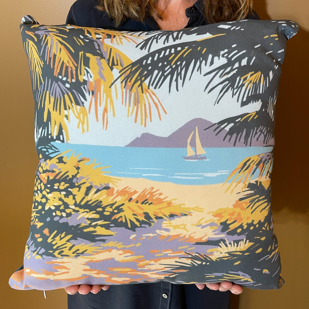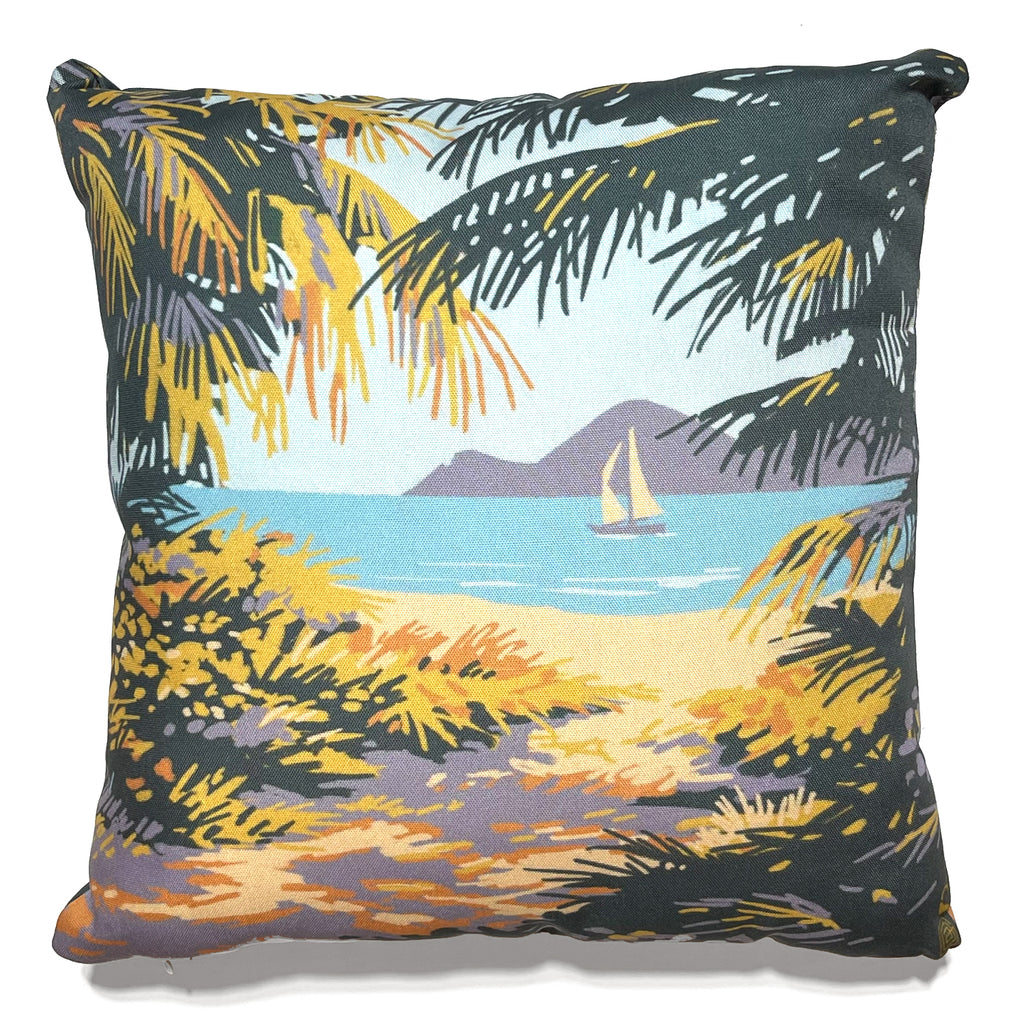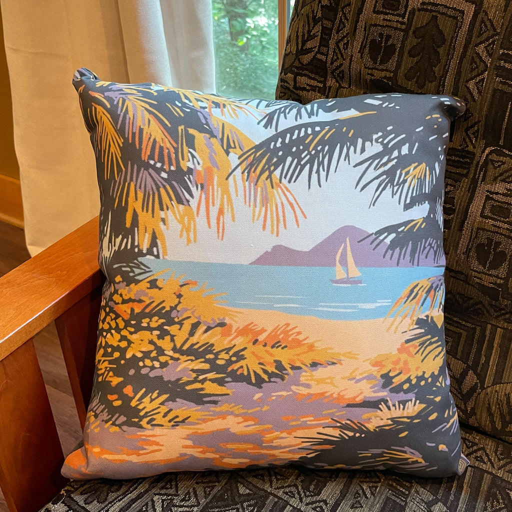 This decorative Virgin Islands throw pillow will spice up any sofa, bed, or futon. The sturdy, yet comfy outer cover is beautifully printed with one of our favorite Kenneth Crane illustrations (full-color art on the front, and classic black on the back). It comes with a hidden zipper at the bottom so you can remove the plush foam cushion to wash the pillow cover. Measuring 18" x 18", this accent pillow is the perfect size for tossing anywhere you need a splash of color (it's also the ideal shape and size for napping, watching nature documentaries, and the inevitable pillow fight). Collect our stylish pillows and decorate with your favorite memories.