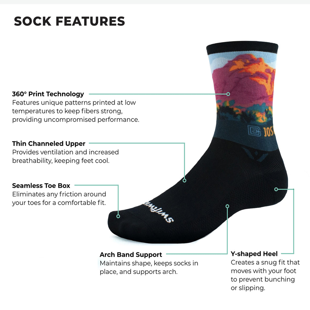 If you like our art, you will LOVE these Grand Canyon socks! Swiftwick is a leading performance sock brand based in Nashville, TN. Swiftwick empowers life's adventures through thoughtful design, superior craftsmanship, and a continuous passion to help others do what moves them. Every sock is MADE IN THE USA and backed by their "Best Sock You Will Ever Wear" guarantee. Anderson Design Group & Swiftwick teamed up to create these beautiful socks which pay homage to the majestic places we love to explore. Featuring designs from Yellowstone, Zion, Great Smoky Mountains, Yosemite, and the Grand Canyon.